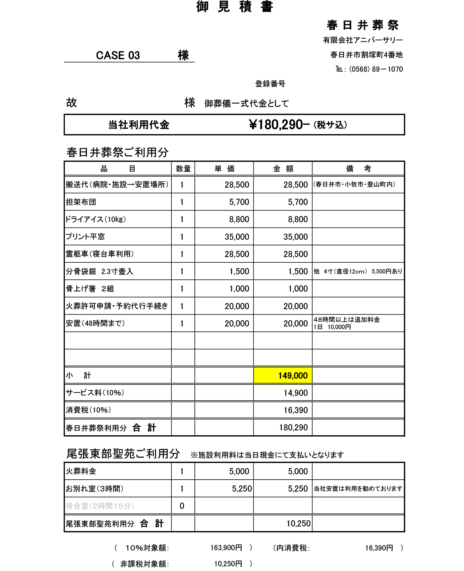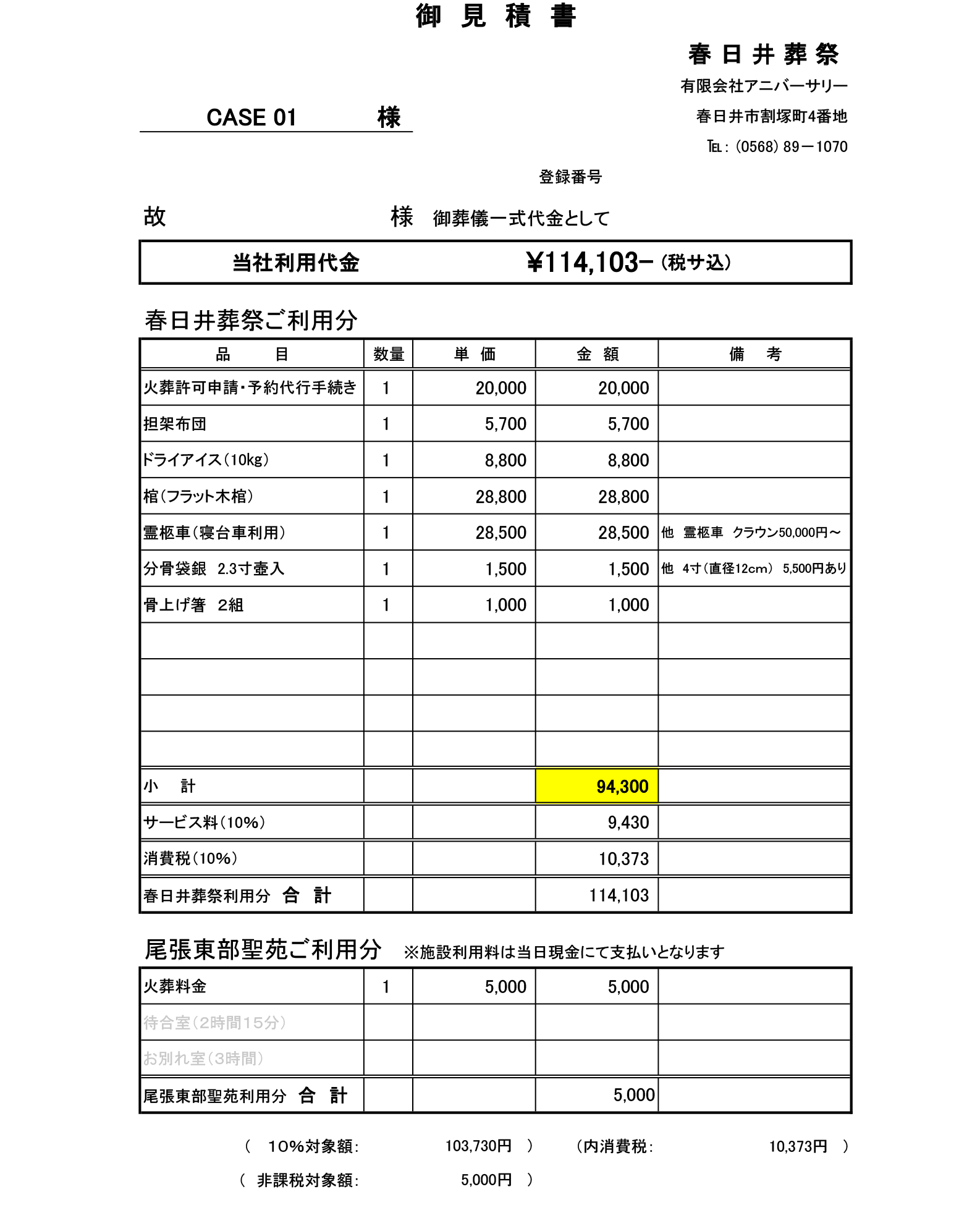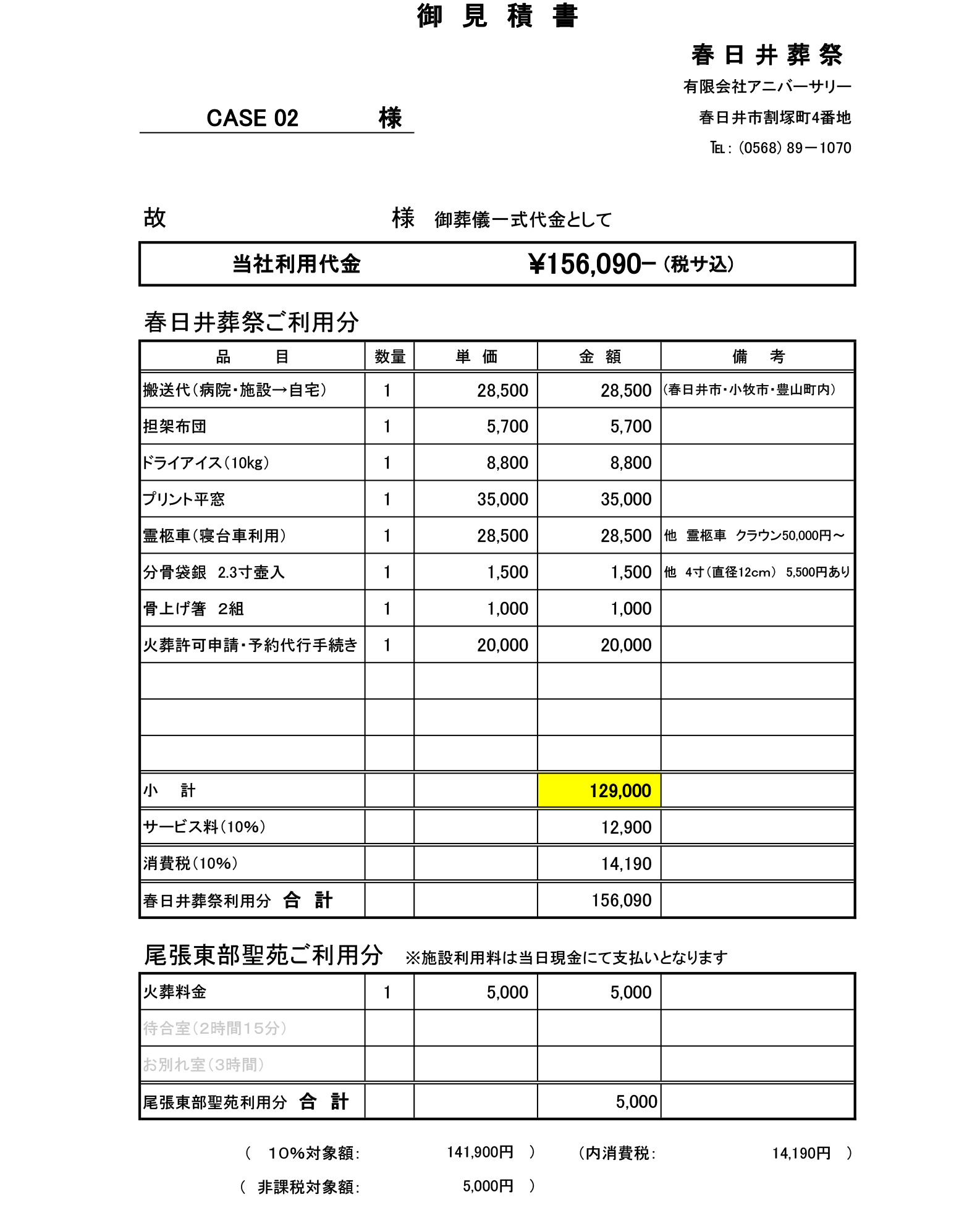 尾張東部聖苑ご利用代金は、現金にて直接施設へのお支払となります。