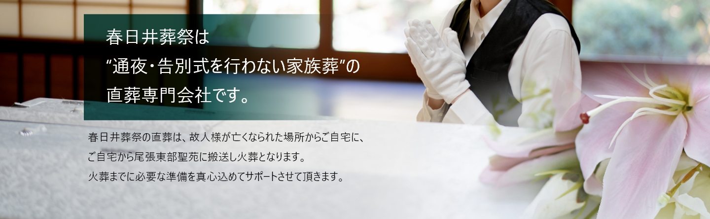 尾張東部聖苑冠婚葬祭は地域による風習が異なります。 地域に合ったサービス提供の為、当社では尾張東部聖苑利用者に限定しております。 この地域で、直葬をご希望の場合は直葬専門店の春日井葬祭までご連絡下さい。 また、プラン以外の販売や営業はしないので、ご安心ください。
